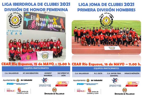 Por desgracia, aun no podemos tener publico en las competiciones de atletismo por lo que todos sabemos... Pero podéis seguir los resultados en directo de nuestr@s atletas en los siguientes enlaces: División de Honor femenina, el sábado a partir de las 15.00: https://www.fetacyl.org/resultados/2021/05/20210515-VA-LIGA-FEMENINO/index.html Primera División masculina, el domingo a partir de las 11.00: https://www.fetacyl.org/resultados/2021/05/20210516-VA-LIGA-MASCULINO/index.html