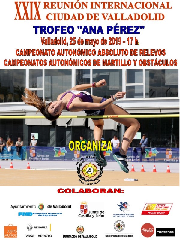 Este sábado de nuevo, tenemos atletismo del bueno en Valladolid, con la Reunión Internacional`Ciudad de Valladolid´ Trofeo `Ana Pérez´, que lleva el nombre de la presidenta de nuestro Club, por tantos años en el Mundo del atletismo, tanto de entrenadora como atleta Internacional en 22 ocasiones. Por la mañana, tendrán lugar varios Campeonatos de Castilla... Leer más →